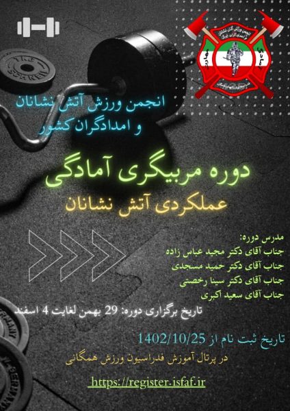 رییس انجمن ورزش آتشنشانان کشور افزودبا هماهنگی وهمکاری بین فدراسیون ورزشهای همگانی وانجمن ورزش آتشنشانان ایران تدریس این دوره به عهده اساتیدمجرب ورزشی آقایان مجید عباس زاده مسئول کمیته آموزش ورزش آتشنشانان کشور،دکتر حمید مسجدی،دکترسینا رخصتی و مهندس سعید اکبری از قهرمانان بنام این رشته برگزار خواهد شد.